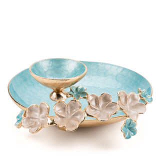 ALUMINIUM LEAF CAKE STAND WITH GLASS