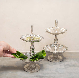 ALUMINIUM LEAF CAKE STAND WITH GLASS