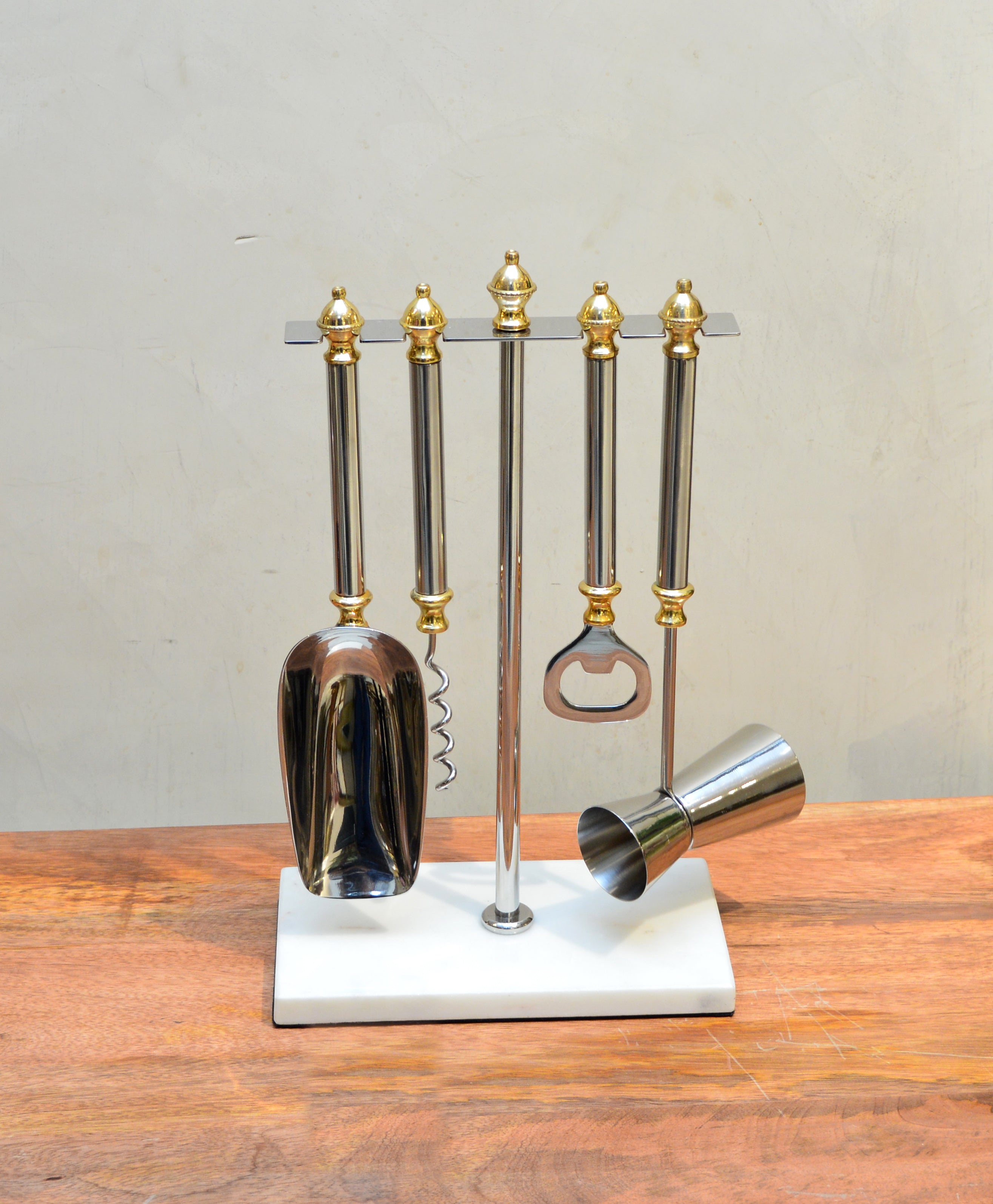 Premium 5-piece bar tool set with black marble handles.