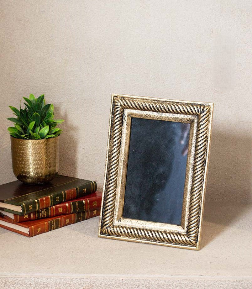 Minimalist gold photo frame with sleek lines for contemporary homes.
