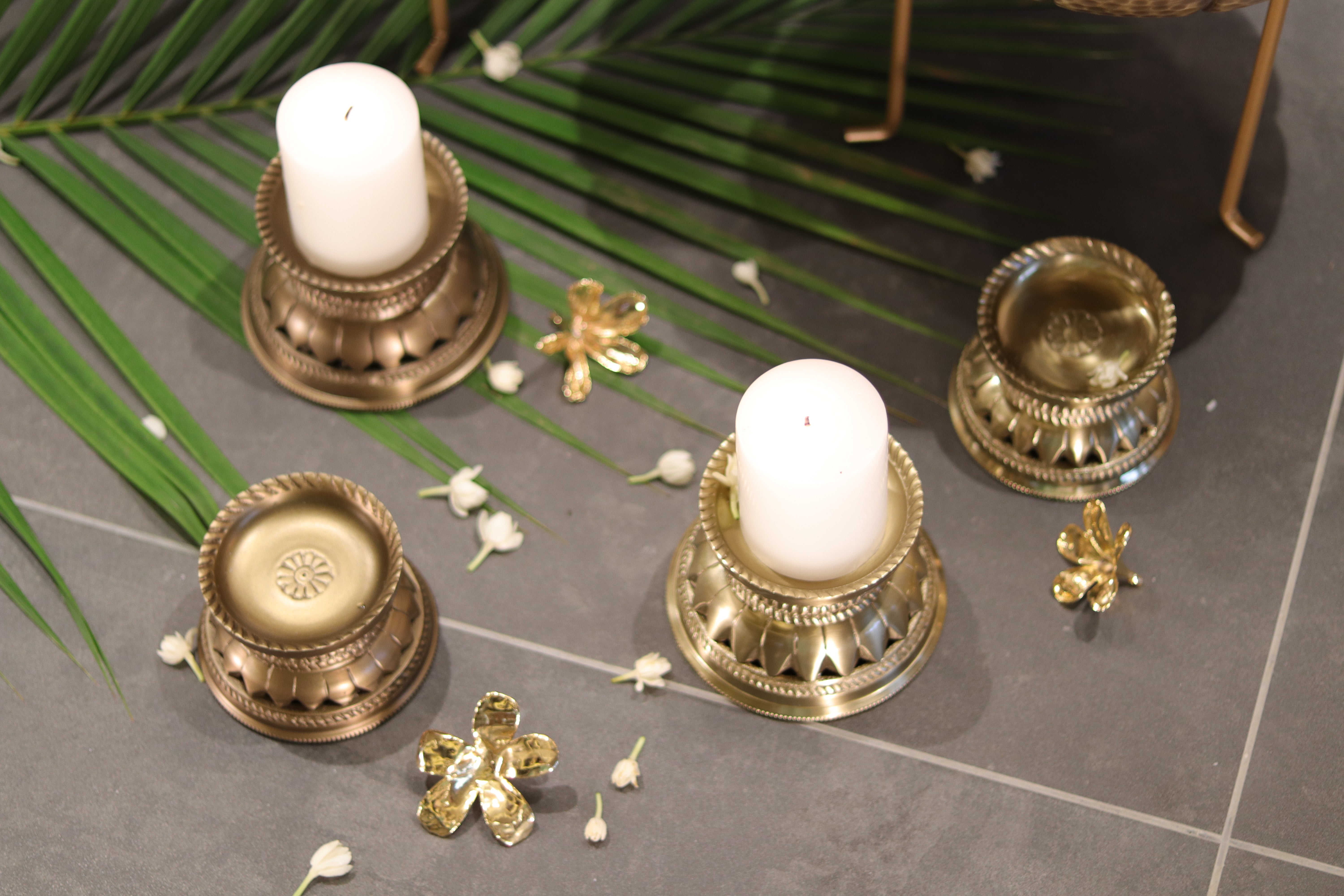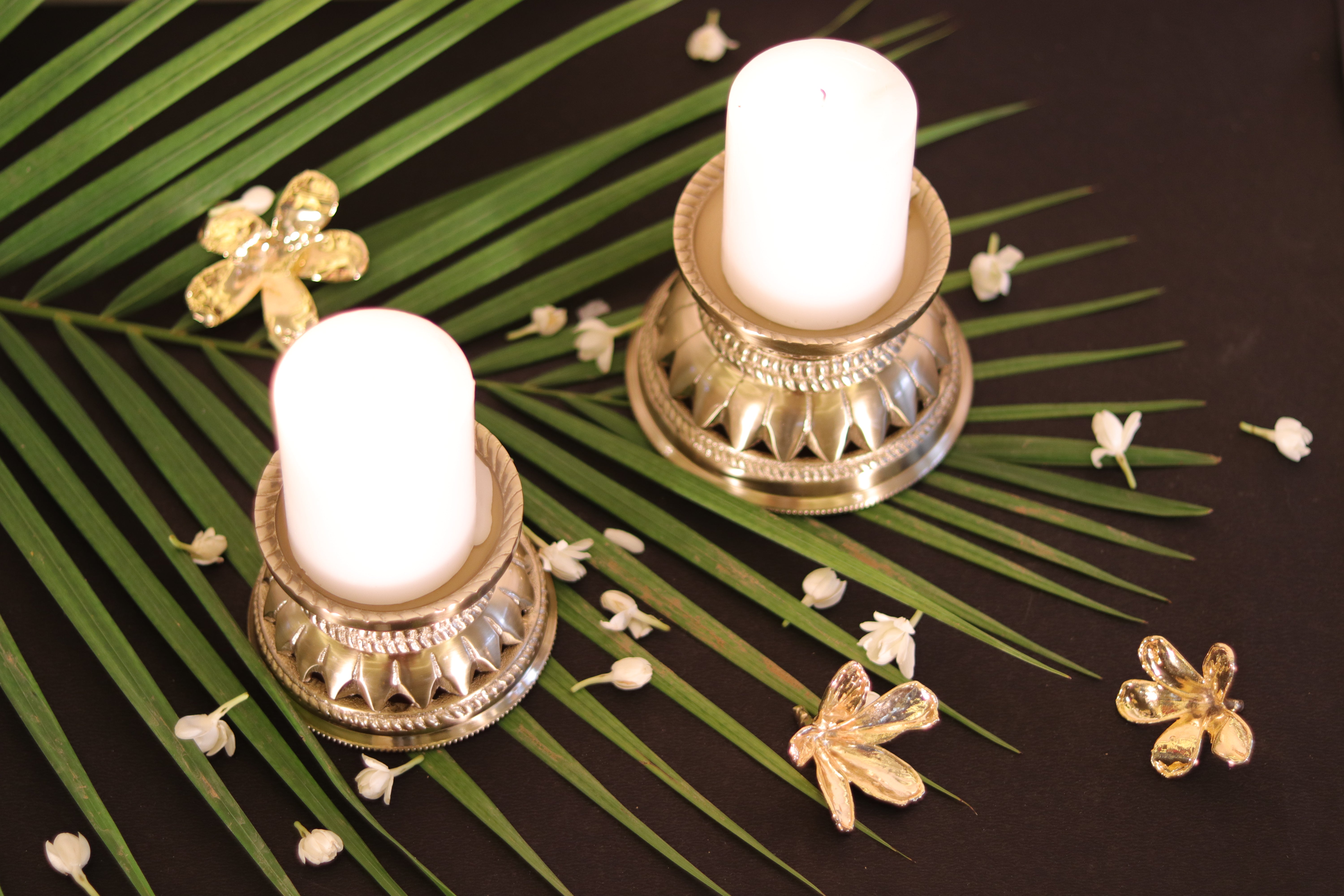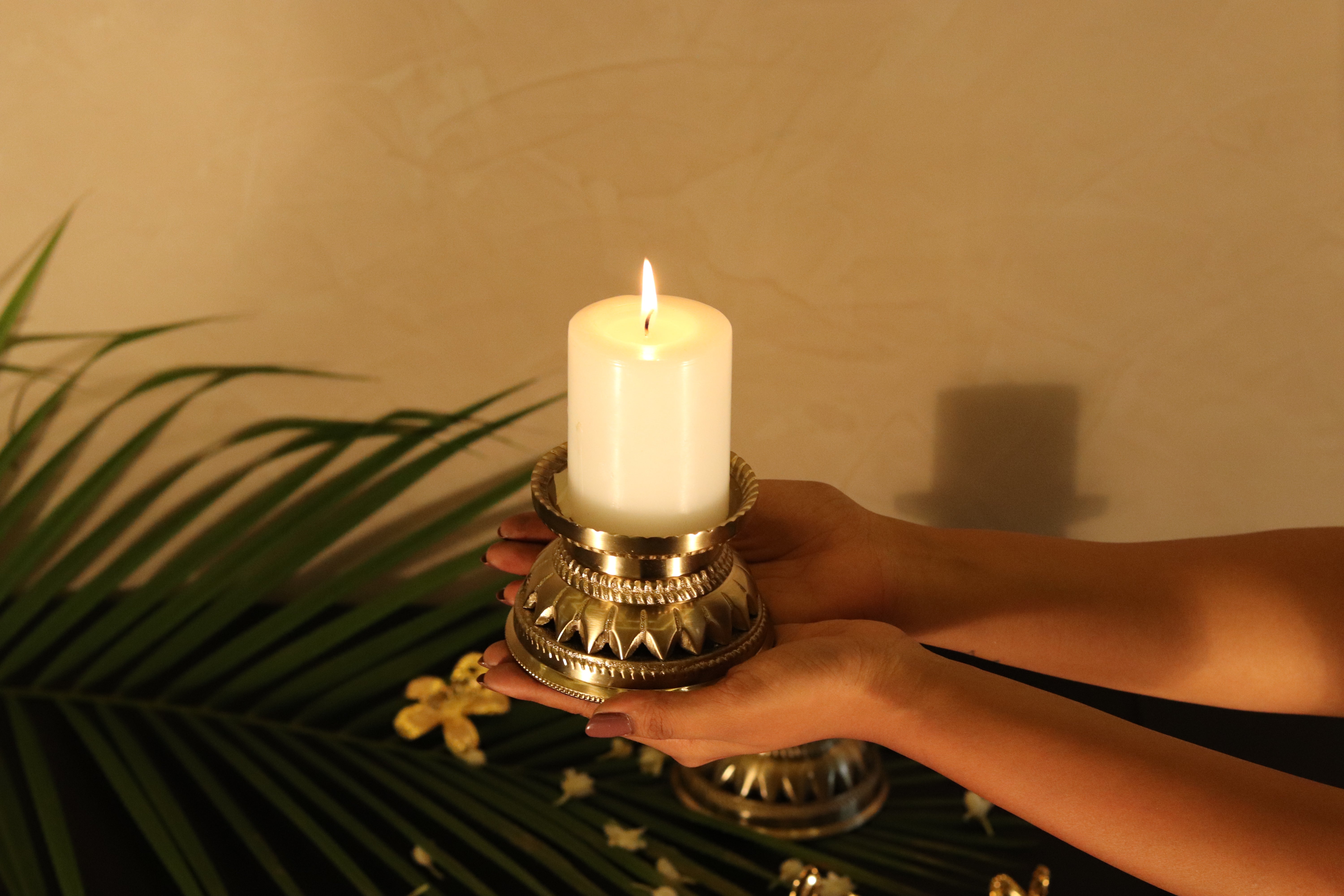 Traditional Roop-style candle holder in glossy antique finish, perfect for festive decor.