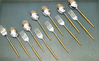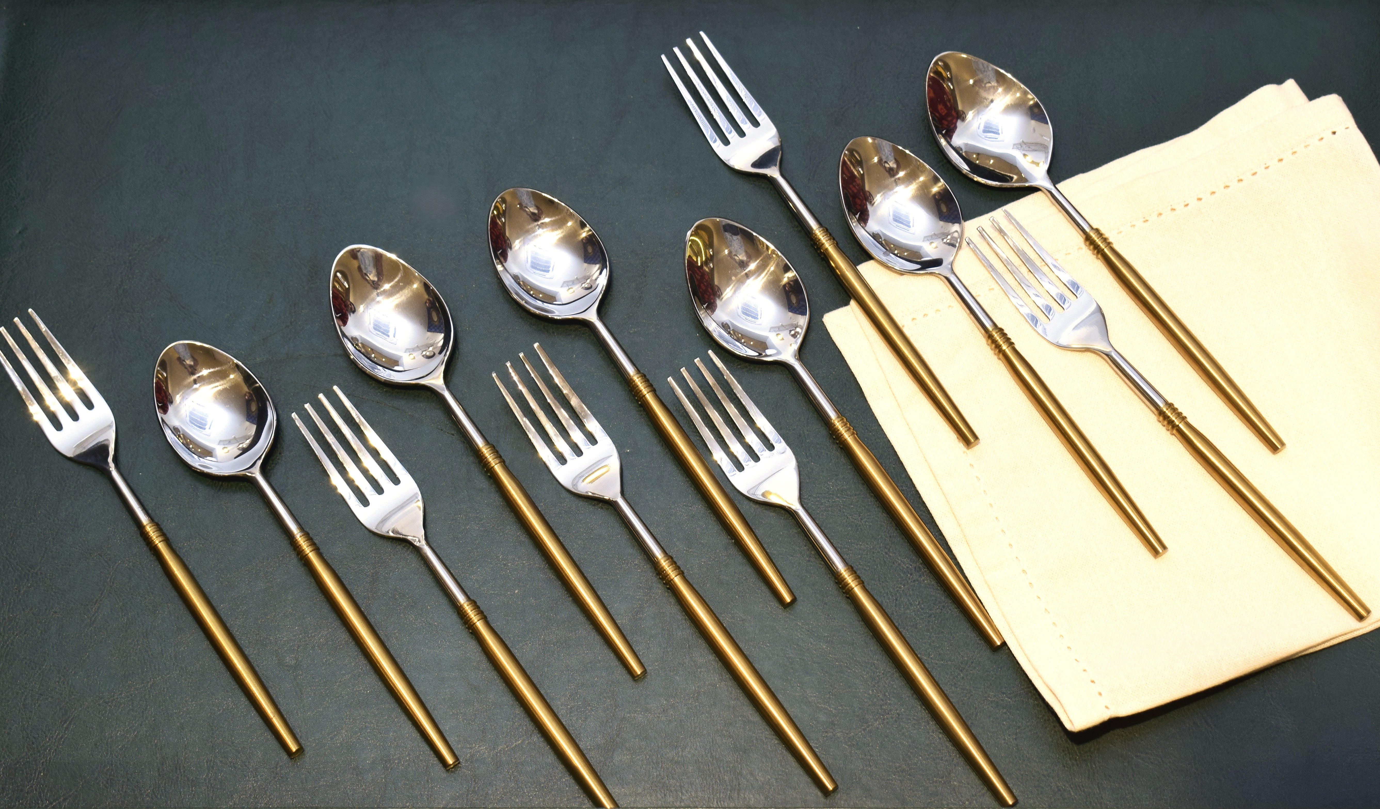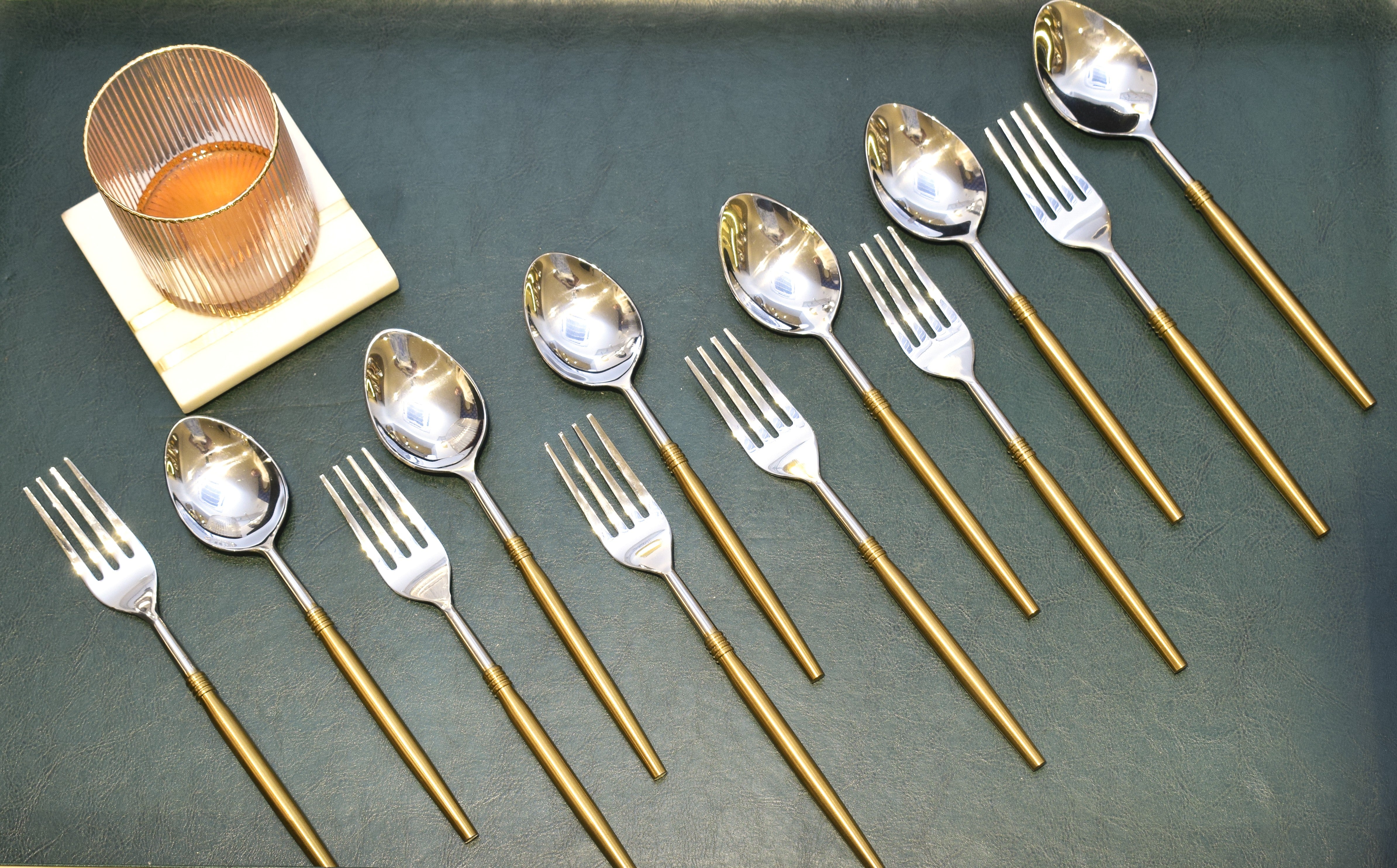 Modern sleek-handle serving cutlery in dual-tone finish.